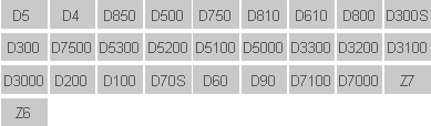 Diese Tabelle listet nur die getesteten Kameramodelle auf, nicht alle Kameras der Nikon-Serie. Für die Kompatibilität anderer Kameramodelle wird ein Selbsttest empfohlen. Das Recht zur Änderung dieser Tabelle bleibt vorbehalten.
