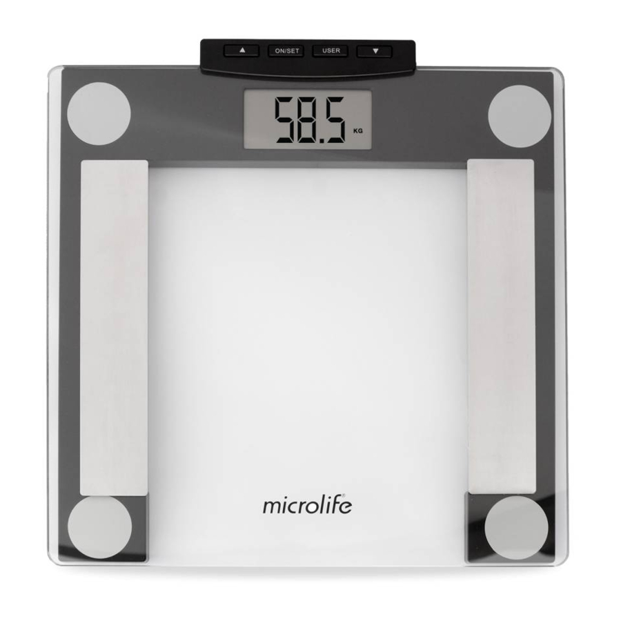 Diese Diagnosewaage ermöglicht es Ihnen, Ihre Körperzusammensetzung zu beurteilen. Das Wissen um Ihre Körperzusammensetzung ermöglicht es Ihnen, eine korrekte Ernährung und körperliche Aktivität als wesentliche Voraussetzungen zur Verbesserung der Lebensqualität, zur Förderung der Gesundheit und zur Vorbeugung von Pathologien zu kombinieren. Detaillierte Benutzerinformationen zu unseren Produkten und Dienstleistungen finden Sie unter www.microlife.it.. Bleiben Sie gesund – Microlife AG!