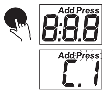 - Drücken Sie die ON/OFF (EIN/AUS) Taste, um den Checker einzuschalten. Alle Segmente werden für einige Sekunden angezeigt, gefolgt von "Add" (Hinzufügen), "C.1" mit blinkendem "Press" (Drücken).
