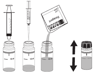 - Geben Sie mit der 5-ml-Spritze genau 4 ml HI781A-0 Reagenz in das große Mischfläschchen.