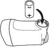 Befolgen Sie die Markierung für den Batterieeinsatz im Batteriefach, um die + und - Enden der Batterie in der richtigen Ausrichtung einzulegen (so einlegen, dass das - Ende nach außen zeigt). Wenn die Batterie nicht richtig eingelegt ist, funktioniert der Laser-Entfernungsmesser nicht.