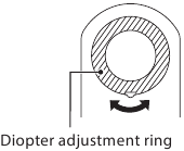 - Blicken Sie durch das Okular und drehen Sie den Dioptrien-Einstellring, bis die interne Anzeige scharfgestellt ist.