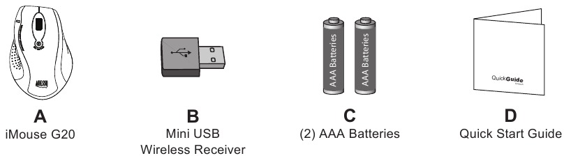 ![Adesso - iMouse G25 - INSTALLATION - Schritt 1 - Batterien einlegen INSTALLATION - Schritt 1 - Batterien einlegen]()