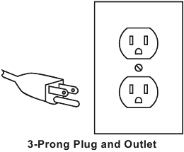 - Das Werkzeug muss an eine geeignete Steckdose angeschlossen werden, die gemäß allen Vorschriften und Verordnungen ordnungsgemäß installiert und geerdet ist. Stecker und Steckdose sollten wie in der vorhergehenden Abbildung aussehen. (Siehe dreipoliger Stecker und Steckdose.)