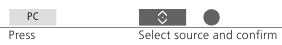 | PC | Drücken Sie LIST, um PC anzuzeigen Drücken Sie die mittlere Taste, um die Quelle zu aktivieren |