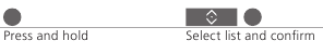 | Navigation und Mitteltaste; bewegen , , und ![]() In Menüs bewegen, indem Sie die Taste in die gewünschte Richtung drücken |