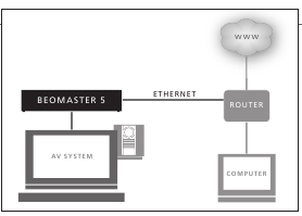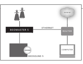 Um Software-Updates und N.RADIO zu erhalten, muss BeoMaster 5 mit dem Internet verbunden sein.