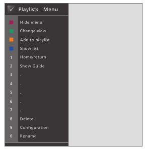 In anderen Ansichten; Drücken Sie die gelbe Taste, um den markierten Sender oder die Gruppe zu einer Wiedergabeliste hinzuzufügen.