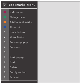 - Wenn Sie WEB aktiviert haben, drücken Sie wiederholt die grüne Taste, um zwischen den verschiedenen Ansichten zu wechseln; Lesezeichen, Verlauf und Pop-ups.