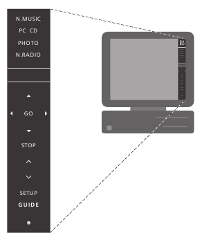 , um zwischen verfügbaren N.MUSIC Titeln zu wechseln. - Drücken Sie dann GO (START), um einen Titel auszuwählen.