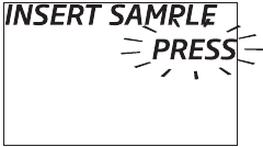 Die Anzeige zeigt dann "INSERT SAMPLE" (PROBE EINFÜGEN) mit blinkendem "PRESS" (DRÜCKEN), wenn das Messgerät erfolgreich kalibriert wurde.