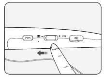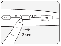 - Halten Sie die Call button (Anruftaste) gedrückt und schieben Sie den Power switch (Ein-/Ausschalter) in die ON (EIN)-Position, um das Gerät einzuschalten.