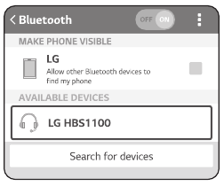 - Wählen Sie aus der Mobiltelefon- oder Geräteliste LG HBS1100 zum Verbinden aus.