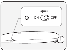 - Halten Sie die Call button (Anruftaste) gedrückt und schieben Sie den Power switch (Ein-/Ausschalter) in die "ON" (EIN)-Position, um ihn einzuschalten.