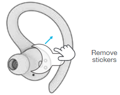 - Βγάλτε τα ακουστικά από τη θήκη φόρτισης και αφαιρέστε τα αυτοκόλλητα.