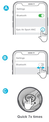 ΑΠΕΝΕΡΓΟΠΟΙΗΣΤΕ το Bluetooth από οποιαδήποτε προηγουμένως συνδεδεμένη συσκευή. ΕΝΕΡΓΟΠΟΙΗΣΤΕ το Bluetooth από τη νέα συσκευή. Βγάλτε τα ακουστικά από τη θήκη. Τα ακουστικά θα εισέλθουν αυτόματα στη σύζευξη Bluetooth. Επιλέξτε "Epic Air Sport ANC" στις ρυθμίσεις της νέας συσκευής για να συνδεθείτε.