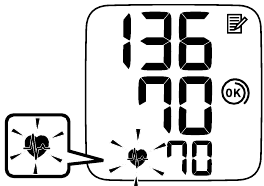 Εάν οι ακανόνιστοι καρδιακοί παλμοί καταστήσουν άκυρη τη μέτρηση, δεν εμφανίζεται κανένα αποτέλεσμα. Εάν το σύμβολο ακανόνιστου καρδιακού παλμού (