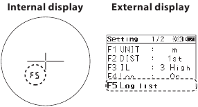 : Εμφανίζεται ενώ εκπέμπεται το λέιζερ για μια μέτρηση. Μην κοιτάτε προς την πλευρά του αντικειμενικού φακού ενώ εμφανίζεται αυτό το σημάδι. - Μονάδα μέτρησης (m: μέτρο/YD: γιάρδα/ft: πόδια)