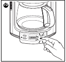 - Η καφετιέρα είναι εξοπλισμένη με μια συσκευή διακοπής σταγόνων, που σας επιτρέπει να σερβίρετε καφέ πριν τελειώσει το νερό να τρέχει. Αντικαταστήστε γρήγορα την καράφα για να αποφύγετε την υπερχείλιση.