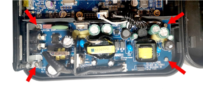 | Αφού αφαιρέσετε το εργοστασιακό τροφοδοτικό και την πλάκα ενίσχυσης, κοιτάξτε τον πείρο συγκράτησης. Εισάγετε τη νέα διεπαφή έτσι ώστε ο πείρος που υποδεικνύεται να εισέλθει στην οπή συγκράτησης στη μονάδα. | |