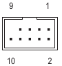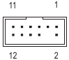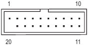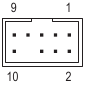 Ένα μικρό τρίγωνο υποδεικνύει τον ακροδέκτη ένα της υποδοχής