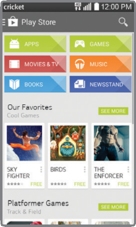 - Πατήστε μια κατηγορία για να περιηγηθείτε σε δημοφιλείς εφαρμογές, παιχνίδια, ταινίες και μουσική οργανωμένα ανά δημοτικότητα ή κατηγορία.