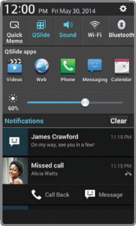 - Από οποιαδήποτε οθόνη, σύρετε προς τα κάτω από το επάνω μέρος της οθόνης για να δείτε τον πίνακα Ειδοποιήσεων.