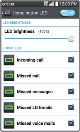 - Για να ενεργοποιήσετε ή να απενεργοποιήσετε το LED του κουμπιού αρχικής οθόνης, πατήστε το Menu (Μενού) key (πλήκτρο)