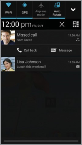 Ο πίνακας ειδοποιήσεων παρέχει γρήγορη πρόσβαση σε ειδοποιήσεις, συμπεριλαμβανομένων νέων μηνυμάτων, email και ενημερώσεων λογισμικού.