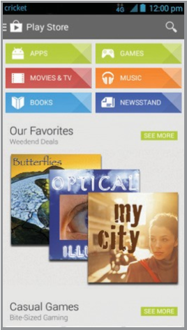- Πατήστε μια κατηγορία για να περιηγηθείτε σε δημοφιλείς εφαρμογές, παιχνίδια, ταινίες και μουσική οργανωμένα κατά δημοτικότητα ή κατηγορία.