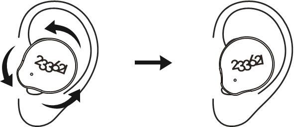 Αφού τοποθετήσετε τα ακουστικά στο αυτί, περιστρέψτε και ρυθμίστε τις ωτοασπίδες στο σωστό βάθος και γωνία ώστε να ταιριάζουν στον ακουστικό πόρο (όπως φαίνεται παρακάτω)