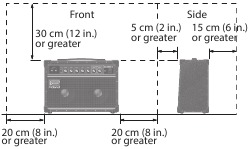 Since this unit normally emits a slight amount of heat, make sure to secure sufficient space around it, as shown below.