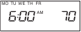 This display window shows that for the 1st weekday period, the start time is 6:00 AM, and 70° is the programmed temperature (this example reflects factory preprogramming). - Press