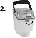 - Fill 2-in-1 water tank with clean hand hot (60°C/140°F MAX) tap water and place back on machine.
