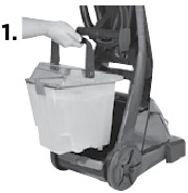 off. Remove 2-in-1 water tank from base using tank carry handle. Carry tank like a bucket to a utility sink or outside where you will dispose of dirty water.