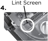 - After each use, remove any debris trapped in red lint screen on base of machine while tank is still removed.
