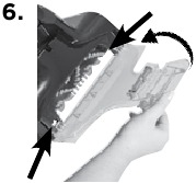 - When finished, replace nozzle by slightly raising front of machine to line up slots on each side of the base with hooks on each side of nozzle. Attach at base first and then push forward to click nozzle into place.