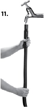 - To clean attachments, remove from hose and rinse under clean, running water. Dry before storing. Clean hose by suctioning clean water from tap (taking care not to let tank overflow). Before wrapping back on machine, lift end of hose and stretch out to ensure all water is cleared from hose. Refer to the previous section, illustrations 11 and 12.