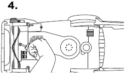 - With your foot, push gray detent pedal located on back of machine next to red power pedal.