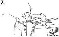 - Attach upper hose/cord rack to back of the handle by guiding hook up into the slot location and pressing firmly upward until it is seated flush with back of machine. Secure 1 short screw through hole in the bottom of upper hose/cord rack.