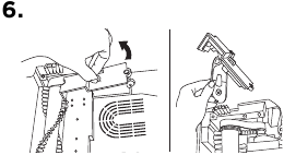 - Wrap hose around lower and upper hose/cord racks and secure it by inserting trigger on hose grip into opening on hose grip holder located on upper hose/cord rack.