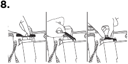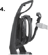 NOTE: Make sure to wrap hose beginning from back of bottom hose/cord rack and then wrapping over and around top of upper hose/cord rack. - Wrap cord around lower and upper hose/cord racks and secure plug to cord with clip on plug.