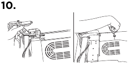 - Attach lower hose/cord rack by guiding the hook up into slot location and pressing firmly upward until it is seated flush with back of machine. Secure 2 short screws through holes on sides of the bottom hose/cord rack.