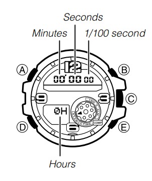 - To enter the Timekeeping Mode from any other mode, hold down D for about two seconds.