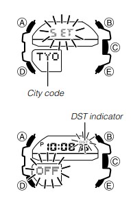 - This will cause DST to appear in the upper display and the DST setting of the currently selected Home City to appear in the lower display.