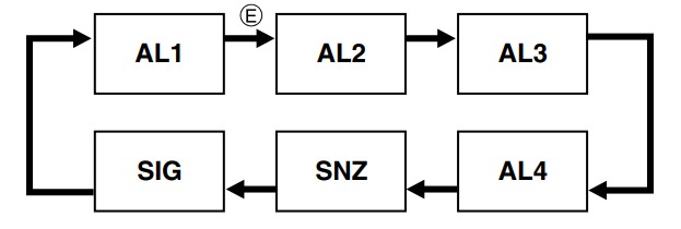 - 5 daily alarms (with one snooze alarm); Hourly Time Signal