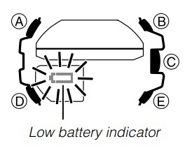 - Sequentially or repeatedly performing sensor, light, alarm, and other power intensive operations over a short period can cause a sudden drop in battery power, which will make the low battery indicator flash. Even though the low battery indicator may disappear and watch functions may become re-enabled, battery replacement is recommended.