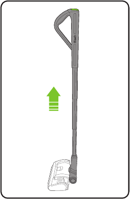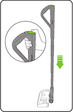 Press the green button and pull the handle upwards to extend. (Press the green button and pull the handle upwards to extend it.)