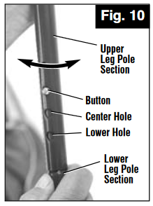 - Push in button on Leg Pole while twisting lower Leg Pole section anticlockwise (Fig.10);