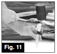 - Insert plastic stakes through web straps located on both sides of tent, then drive in to secure. (Fig. 11)